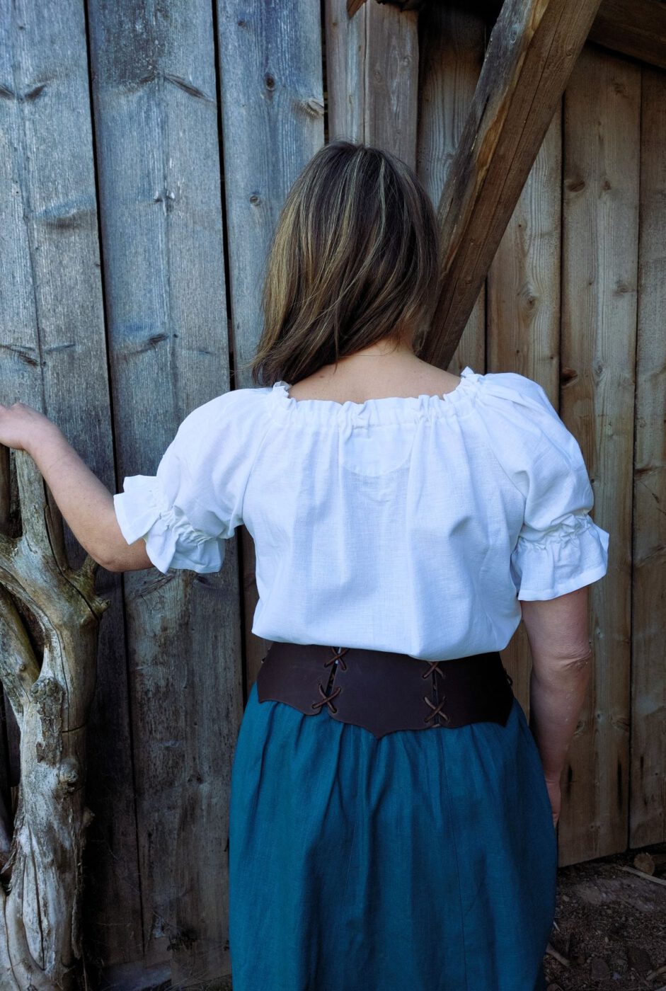 Kombiniere die Bluse mit einem langen Rock und einem Schnürmieder für deinen perfekten Mittelalter-Look, oder trage sie lässig zu einer Jeans. schau dir dazu gerne unseren Leinenrock zum Raffen Hannah an.
