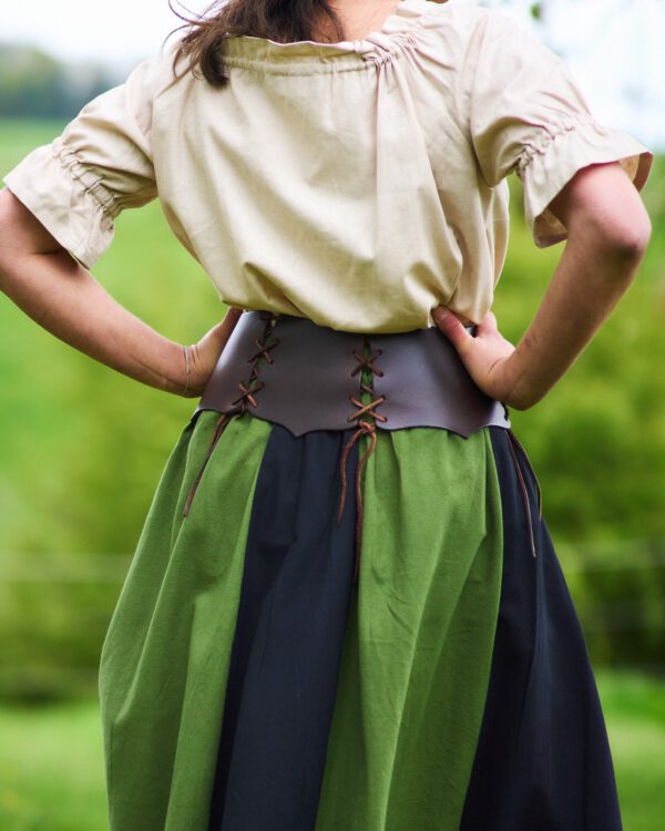 - - Zweifarbig oder einfarbig - Knöchellanger Bahnenrock - zum Hochraffen - Gewandung Material: 100 % Baumwolle Farben: Blau, Natur, Schwarz, Schwarz/Grün, Schwarz/Bordeaux Die Farbdarstellung des Produkts kann medienbedingt abweichen.