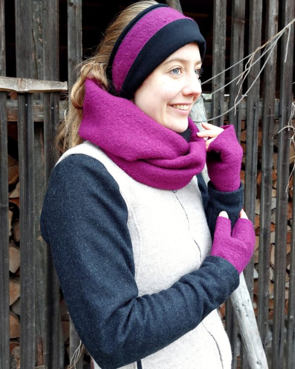 Set aus Stirnband, Loop und Stulpen