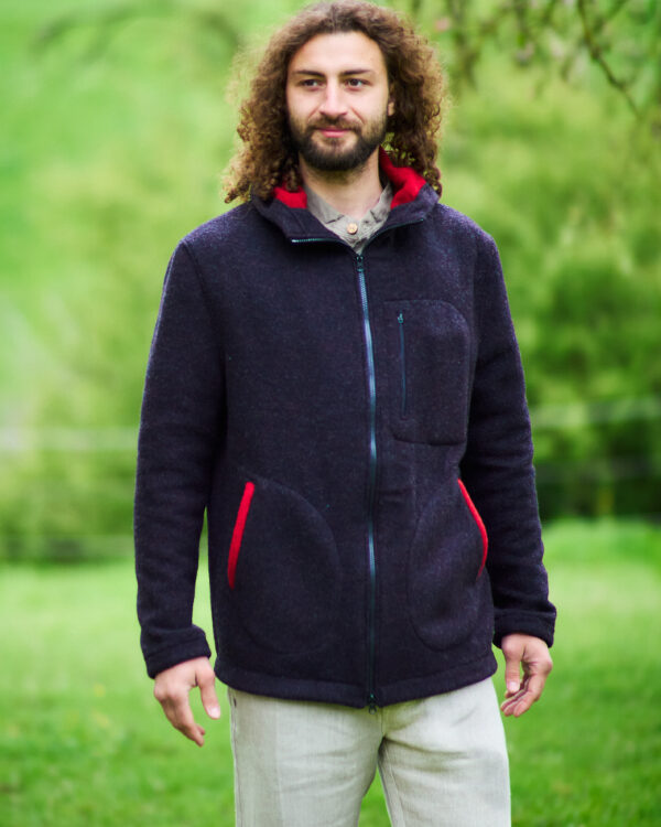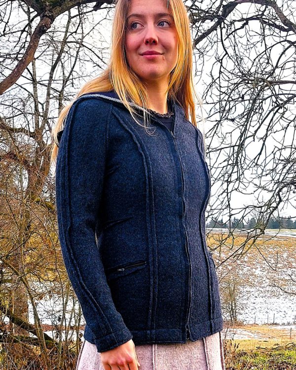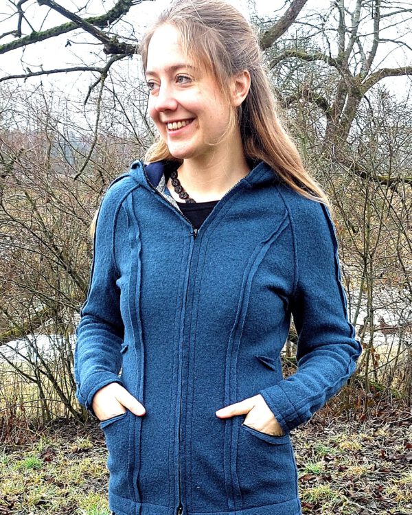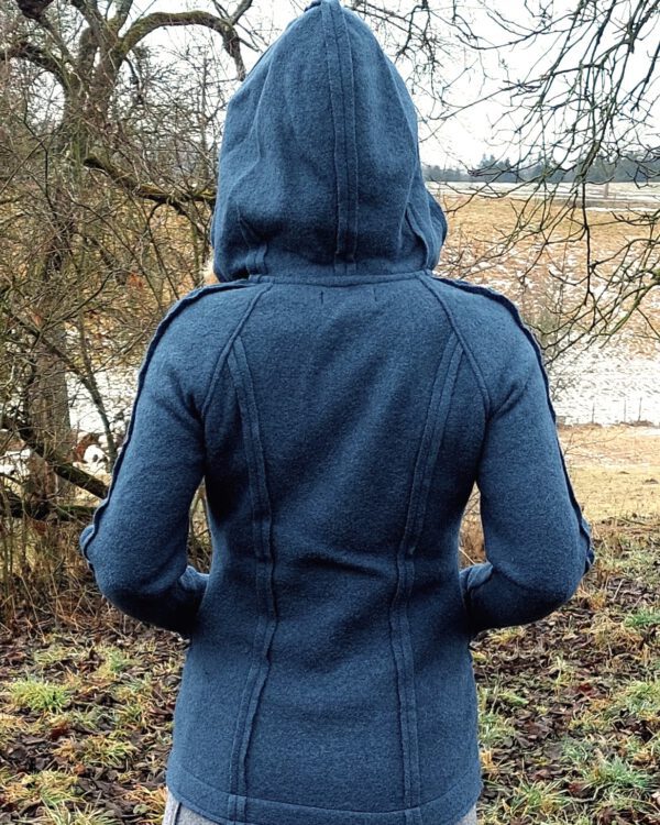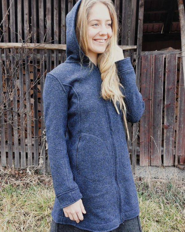- - reine gewalkte Schurwolle - warm und atmungsaktiv - taillierte Passform - Zwei-Wege-Reißverschluss Material: 100% Schurwolle (Mulesing Free), Innenfutter Kapuze: 95% Baumwolle und 5% Elasthan Flechtband: 100% Wolle Farben: Dunkelblau, Dunkelpetrol, Stahlblau