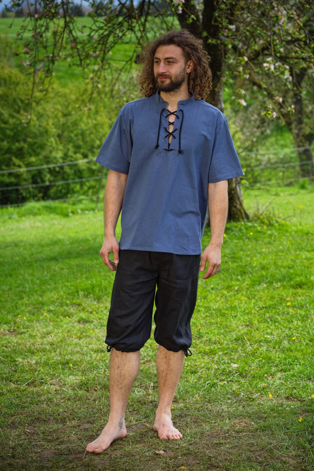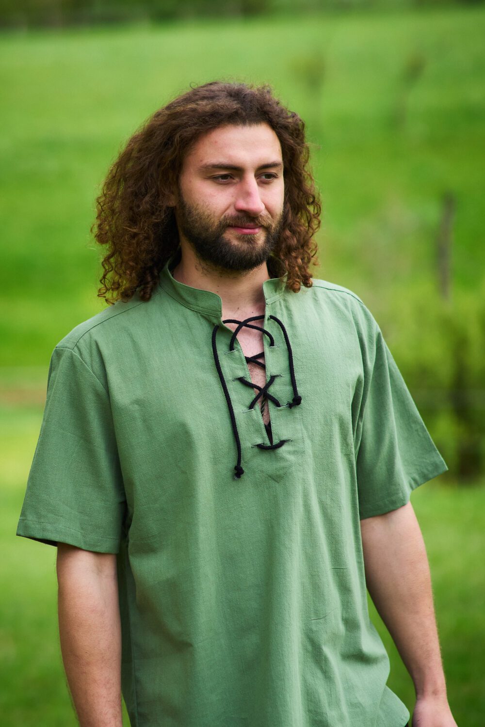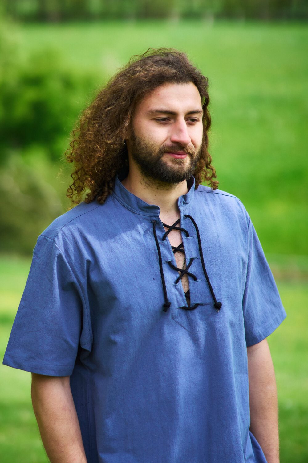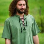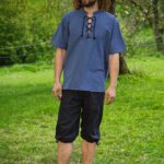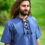 Das mittelalterliche Hemd aus mittelschwerer Baumwolle hat einen kurzen Stehkragen mit Schnürung am Ausschnitt und einen bequemen geraden Körperschnitt. Die kurzen Ärmel sorgen außerdem für mehr Bewegungsfreiheit. Das Hemd ist bei uns im Shop in den Größen XS bis 4XL erhältlich.