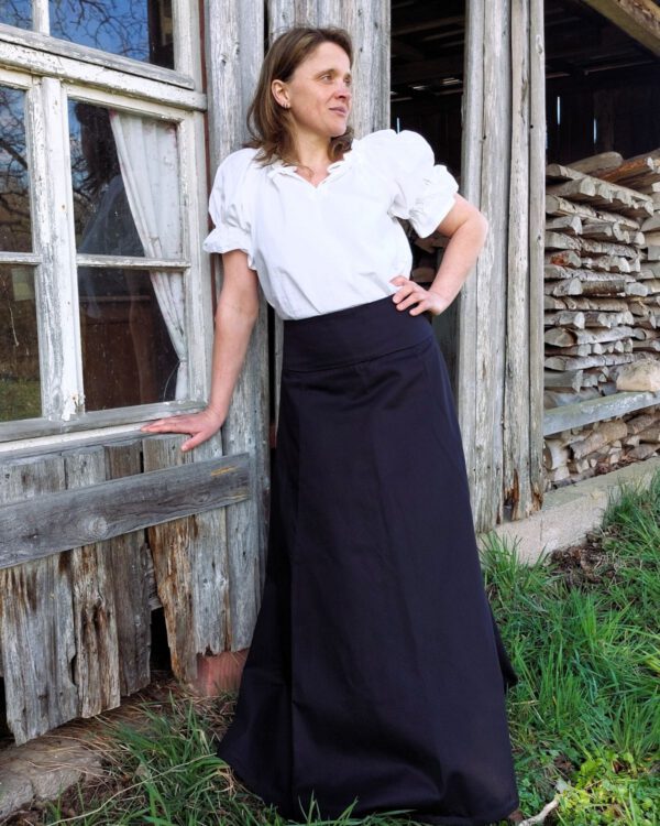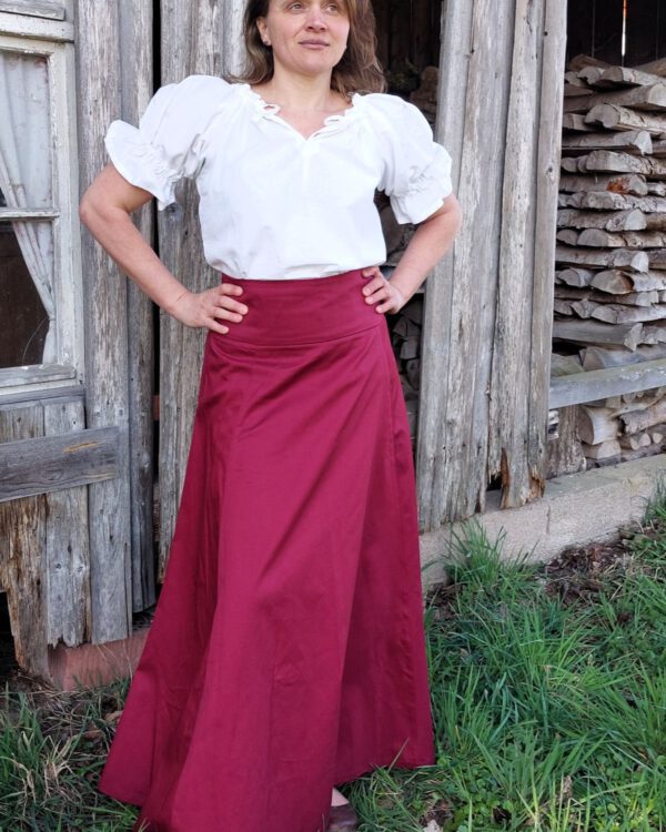 In Kombination mit einem Unterkleid (hier Modell Eva) ist es als historische Gewandung zu tragen.