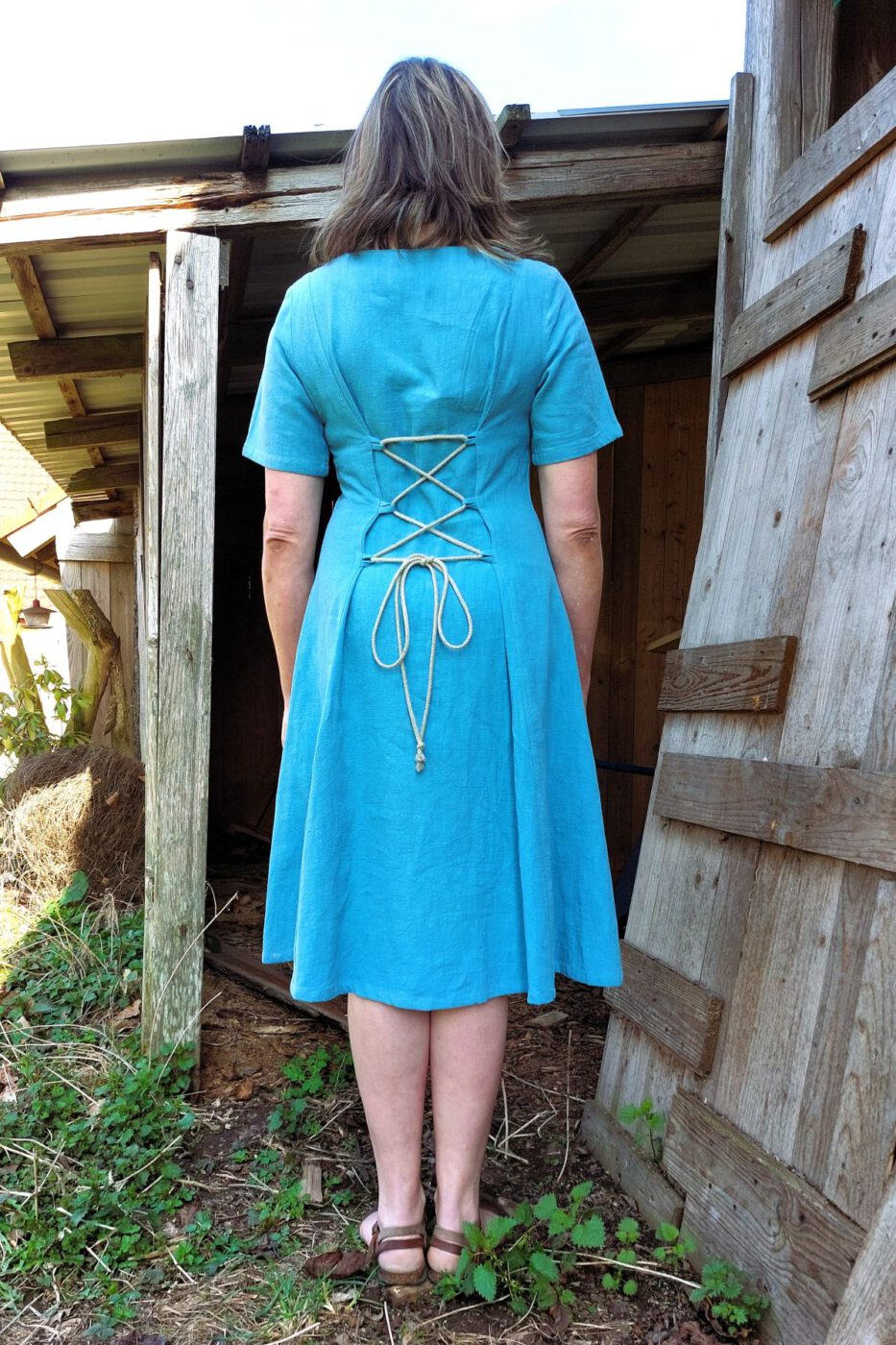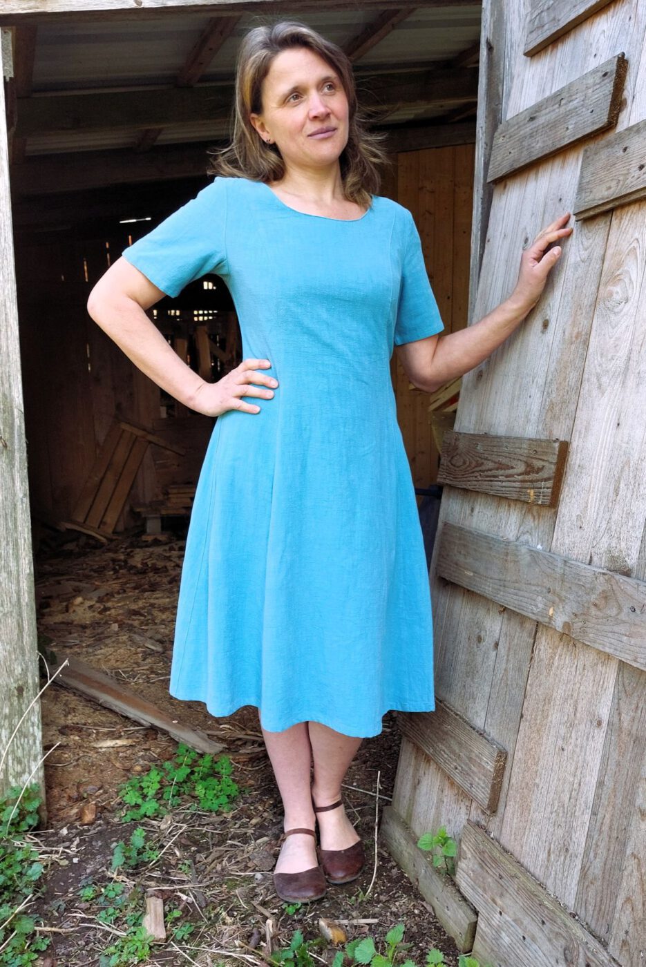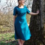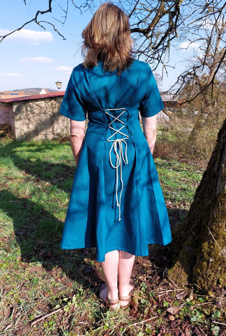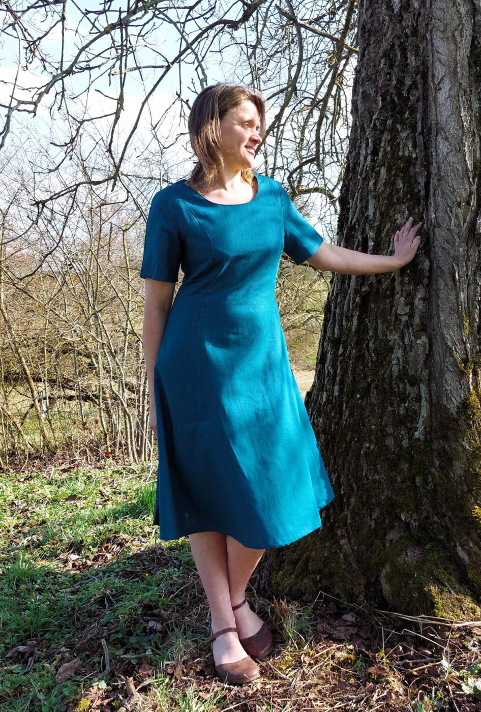 Das Kleid Anouka aus Leinen gibt es in Eisblau und Petrol.