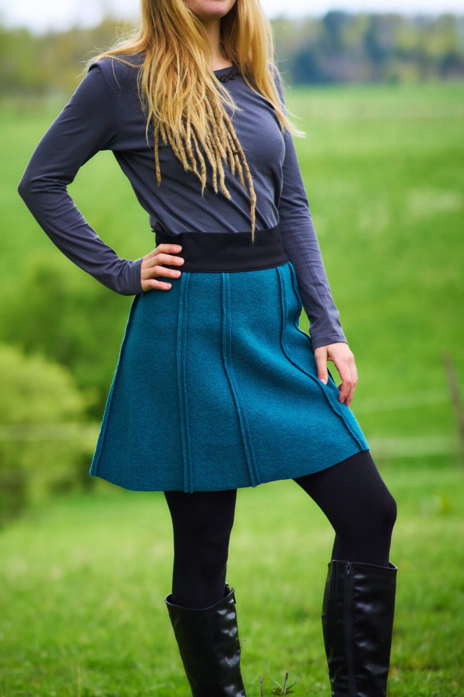 Hergestellt wird unser kurzer Wollrock Tessa in eigener Schneiderei in Deutschland.