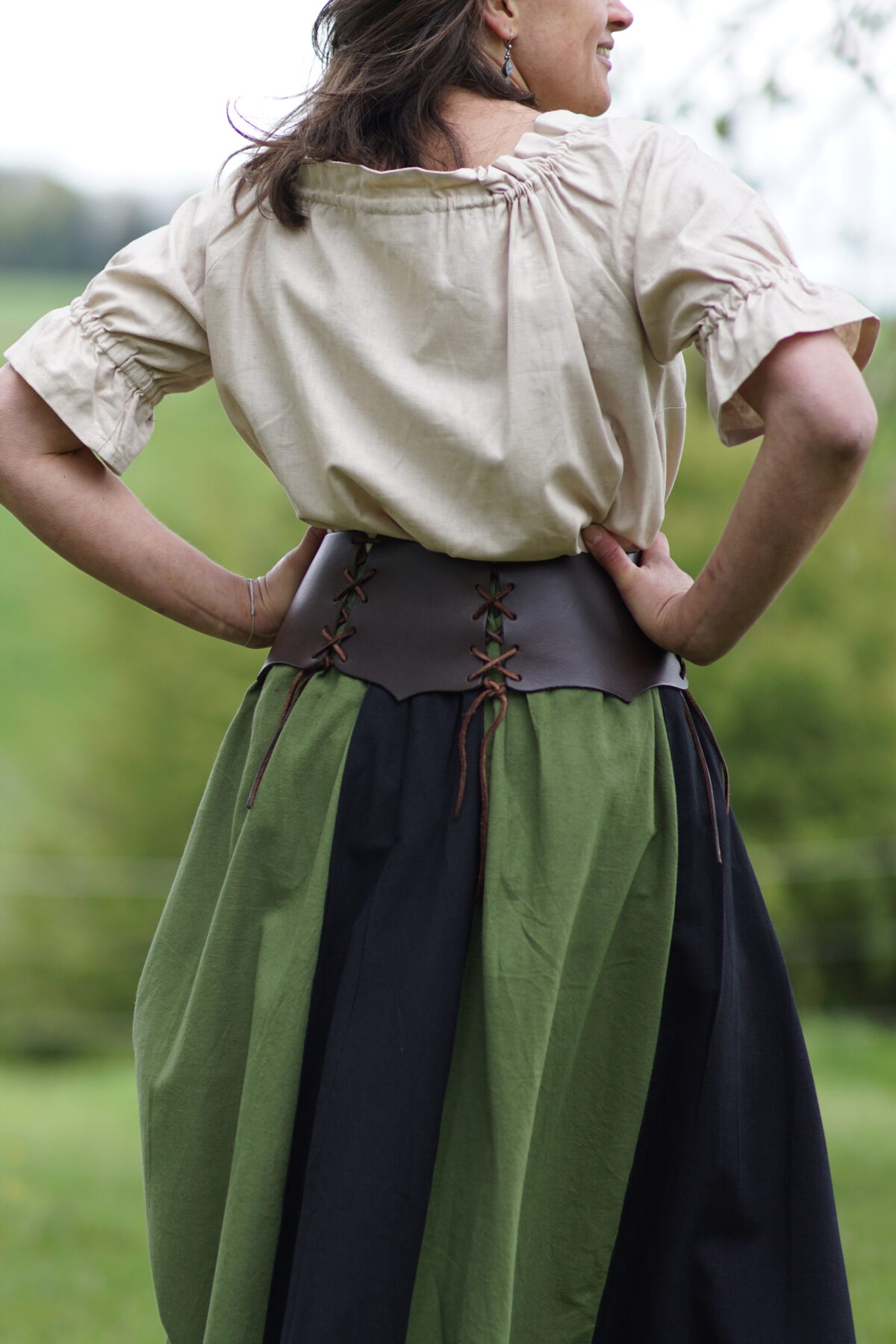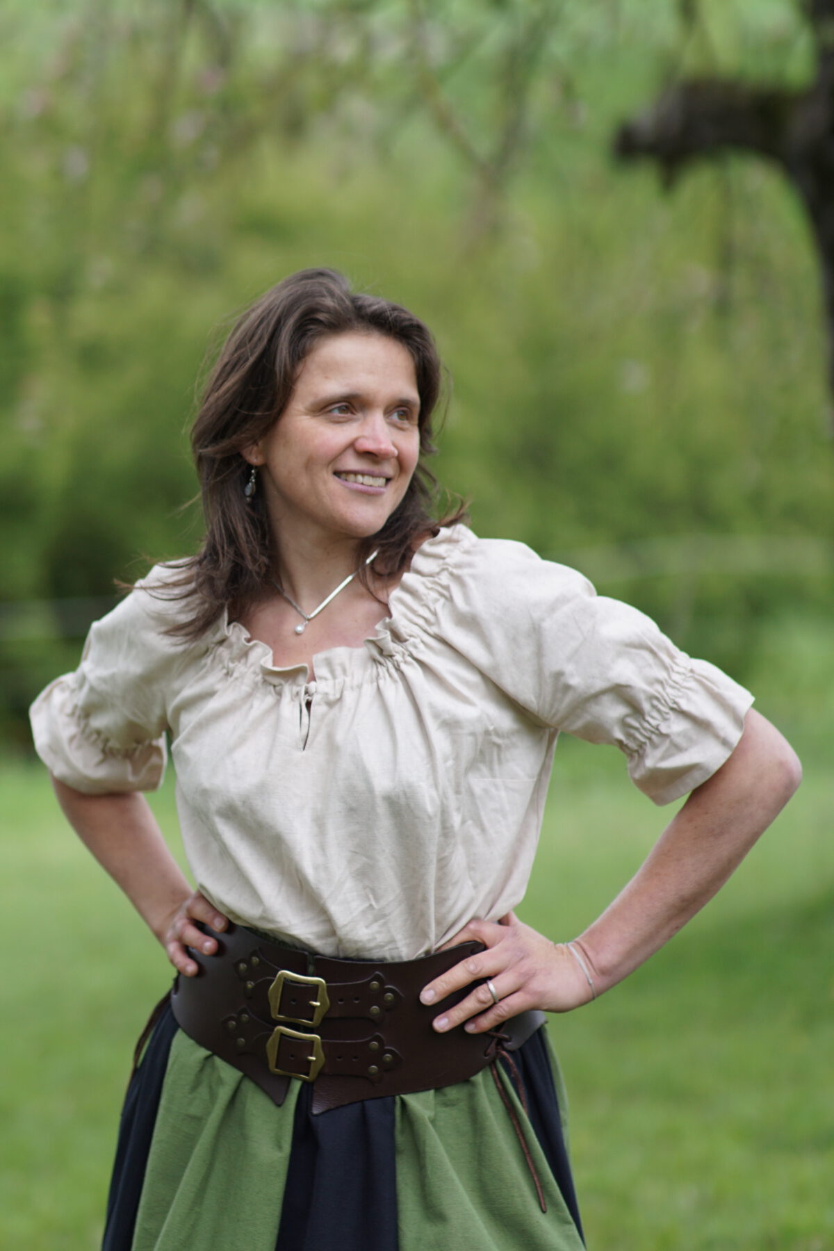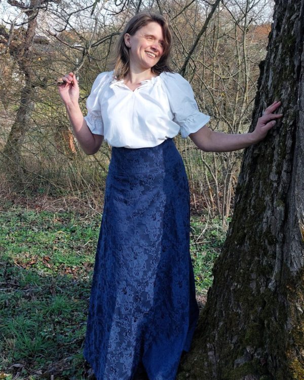 Mit der Rüschung am Halsausschnitt und an den Ärmeln passt sie perfekt zum historischen oder Trachten-Outfit. Mit einem Band kann die Größe des Halsausschnitts variiert werden.