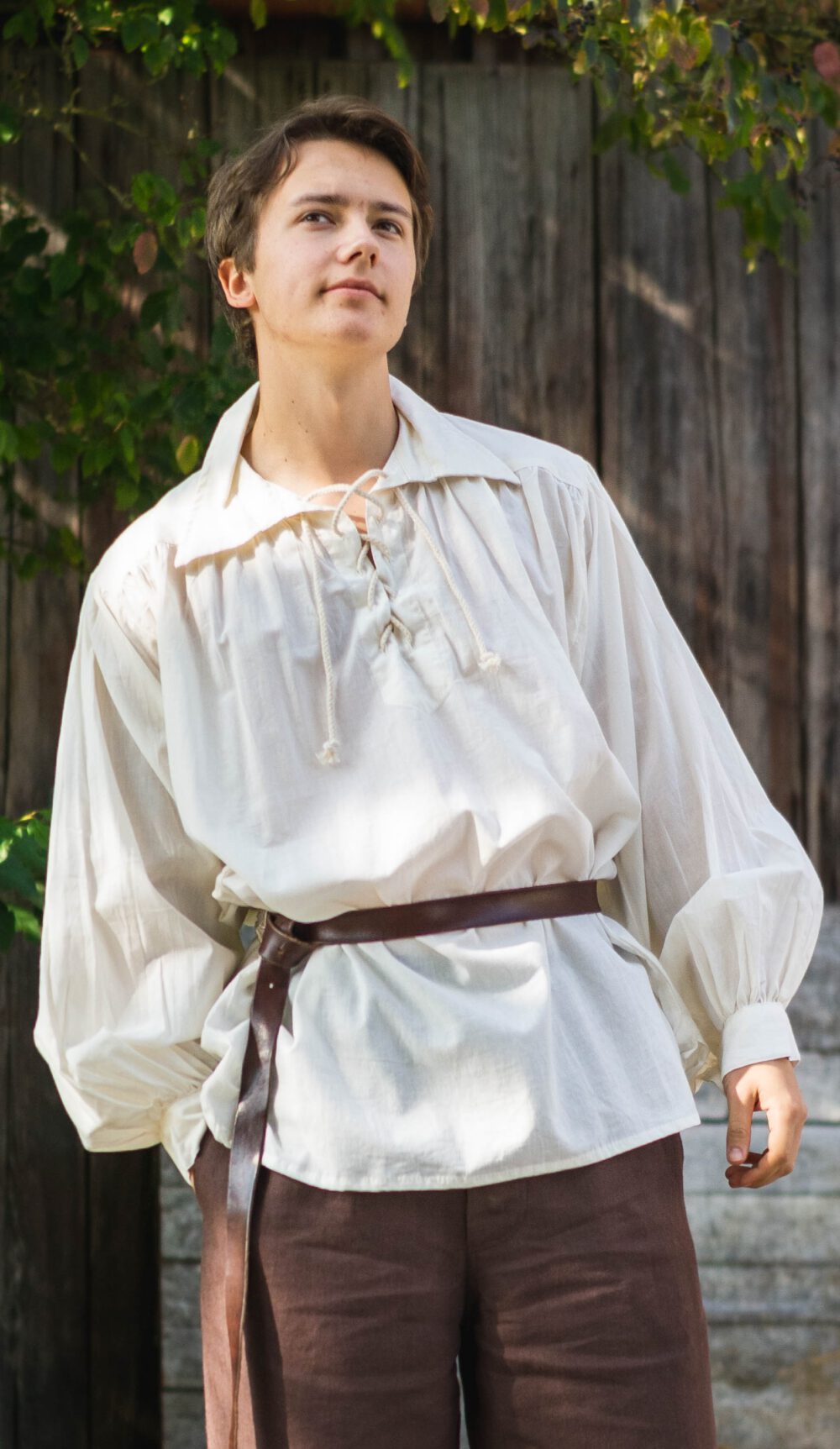Hemden dieser Art haben eine lange Tradition. Der einfache Schnitt und die Schnürung am Hals sieht man in vielen Zeichnungen aus dieser Zeit und belegen, dass man solche Hemden bereits im Spätmittelalter und in der frühen Neuzeit trug.
