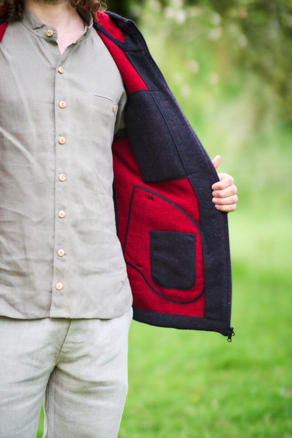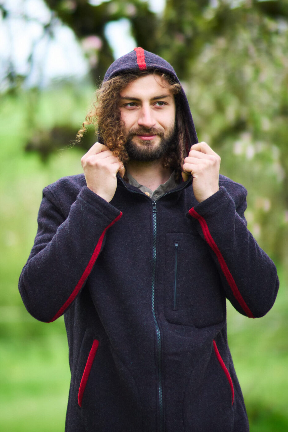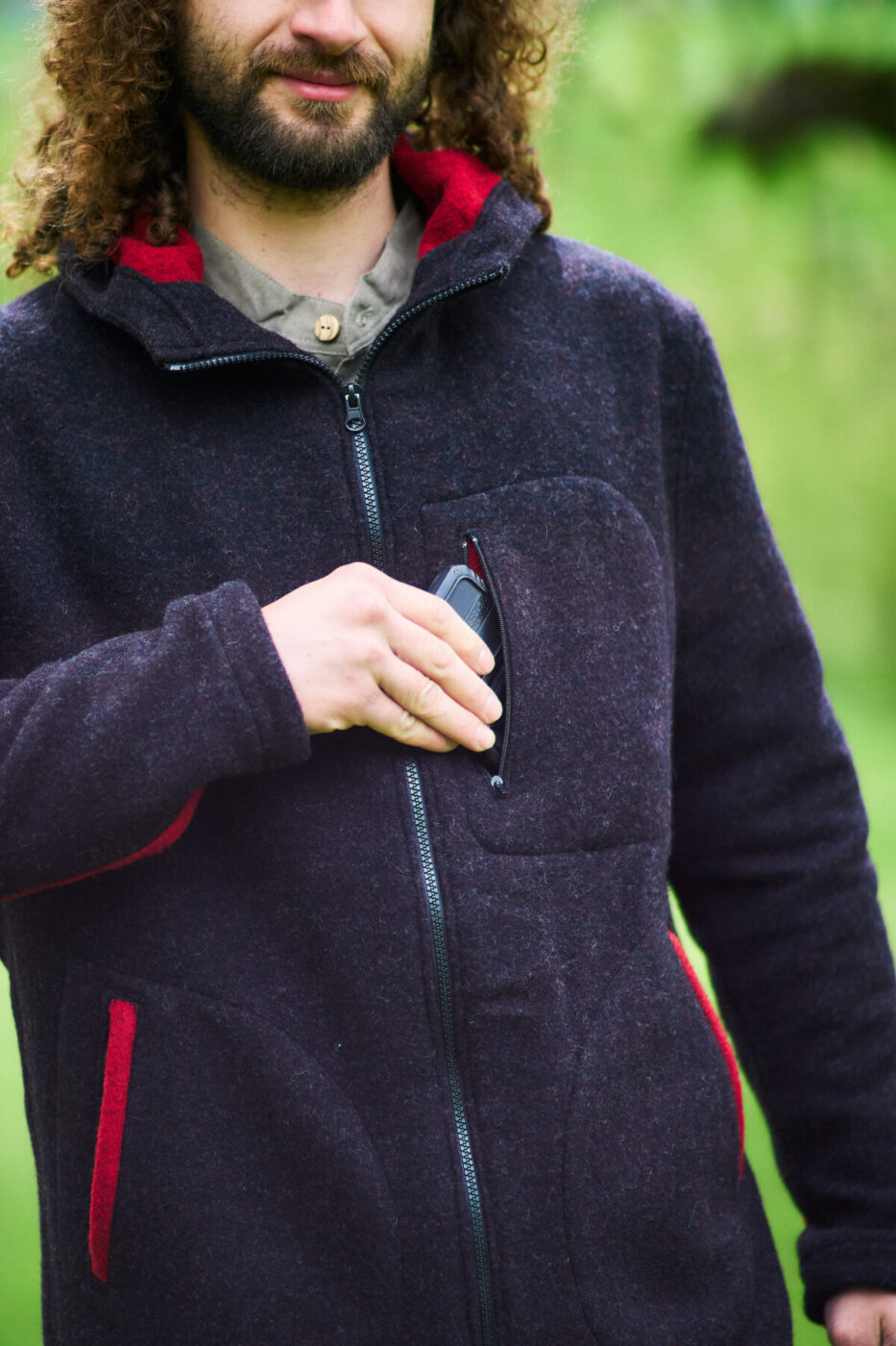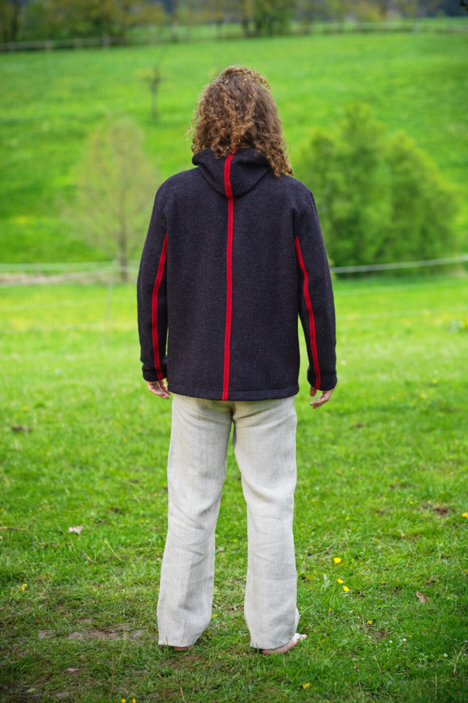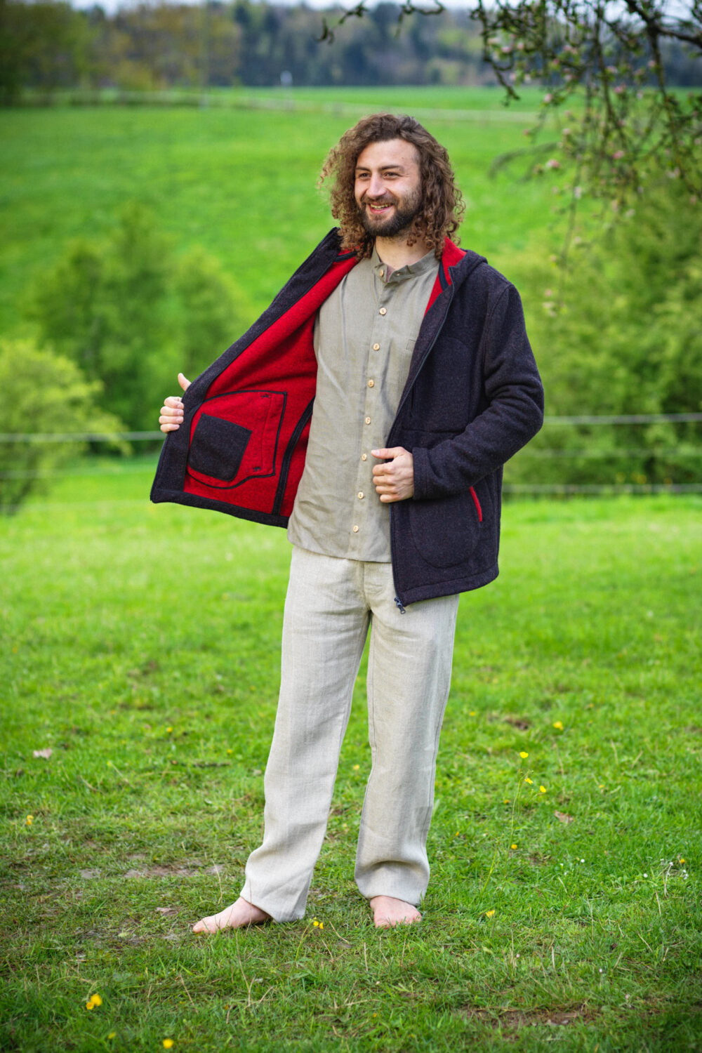 Wir fertigen die Jacke aus 100 % mulesingfreier Schurwolle. Der 500 g/m schwere Doubleface‑Walk ist beidseitig leicht angeraut, wodurch der Stoff warm, weich, robust und formstabil ist. Dieser wird komplett in Deutschland produziert – nachhaltig, langlebig und frei von Kunstfasern. Dieses Material sorgt für einen besonders bequemen Sitz und gewährleistet gleichzeitig eine ausgezeichnete Isolation der Körperwärme. Schurwolle überzeugt zudem durch ihre natürlichen Eigenschaften wie Geruchsneutralität und die Fähigkeit, Feuchtigkeit effektiv nach außen abzuleiten. Dadurch genießt du ein konstant angenehmes Tragegefühl, selbst bei wechselhaftem oder kaltem Wetter.
